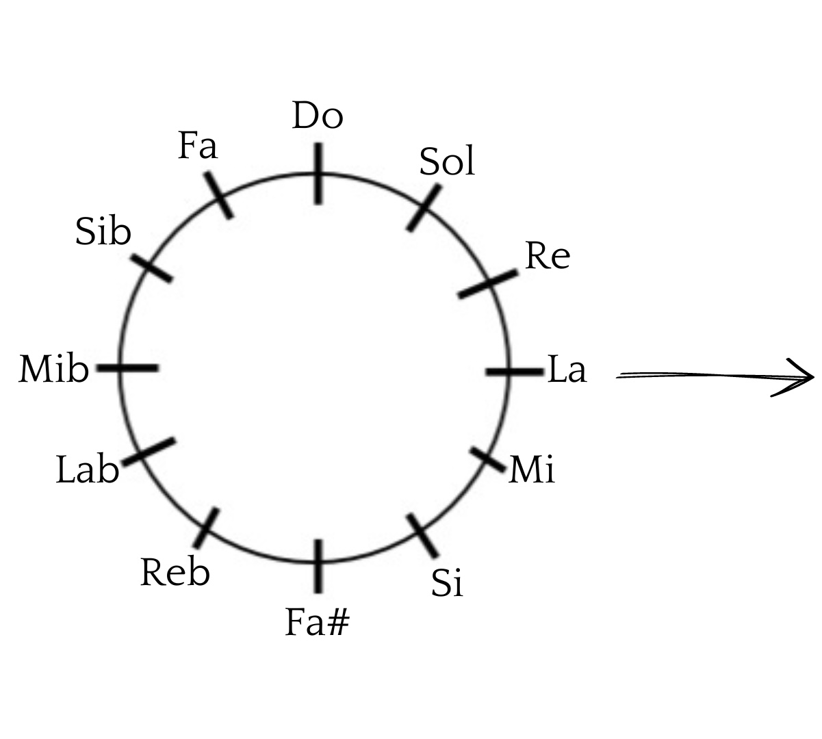 Desumendo dal circolo delle quinte tre assi geometrici, quello di tonica, quello di sottodominante e quello di dominante, ognuno dotato quattro epicentri, si viene a creare una dialettica incentrata sulla tensione polo/contro-polo (ad esempio nell’asse di tonica, l’opposizione si ha tra il do e il fa♯, e tra il mi♭ e il la). In questo modo, l’ottava è simmetricamente divisa in quattro porzioni simmetriche, dettate dalle quattro note di riferimento di ciascun asse (considerando sempre l’asse di tonica avremo: do– mi♭- fa♯-la).