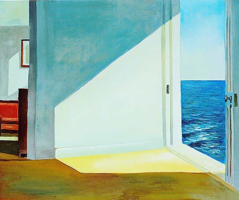 L’esperienza dell’infinito si annida anche nelle piccole cose, nel groviglio di fili della nostra vita quotidiana, non solo nella natura. C’è una bambina che ci dà le spalle, intenta al suo lavoro. È la figlia della pittrice. Sembra quasi di sentirla sferruzzare, forse questo è l’unico rumore percepibile. Tutto il resto sembra tacere. È il blu a colmare la stanza di un silenzio rasserenante. Non avete la stessa impressione? La luce fa il suo gioco, confonde i contorni, imprime il suo passaggio sulla parete, e sembra riversare il blu in tutta la stanza: è nel vestito della bambina, nel rivestimento dei mobili, nelle le pareti stesse, perfino in alcune striature del tappeto. A un anno di distanza dal tormentato Campo di grano con volo di corvi di Van Gogh, anche la Ancher accosta il giallo al blu, ma per restituire un’immagine di rara serenità, di intimità domestica. Giallo è anche il filo che la bambina lavora: anche lei è assorta, come la madre, in un’attività creativa. Come in una sorta di mise en abyme, la madre che crea ritrae la figlia che crea. Del resto, mentre lavora, il rocchetto non è posato compostamente sul suo grembo, ma è andato lontano, a lambire il blu, e tutte le infinite possibilità che schiude.